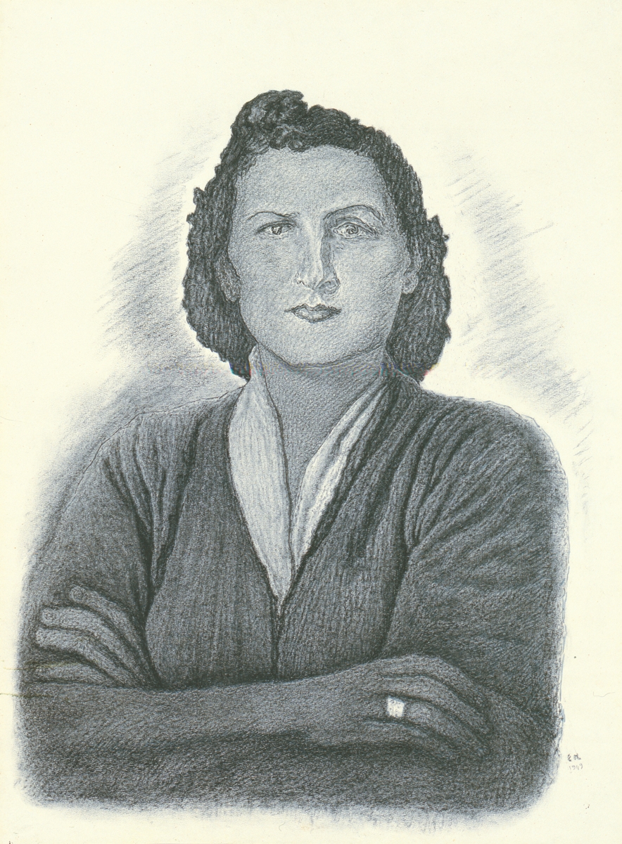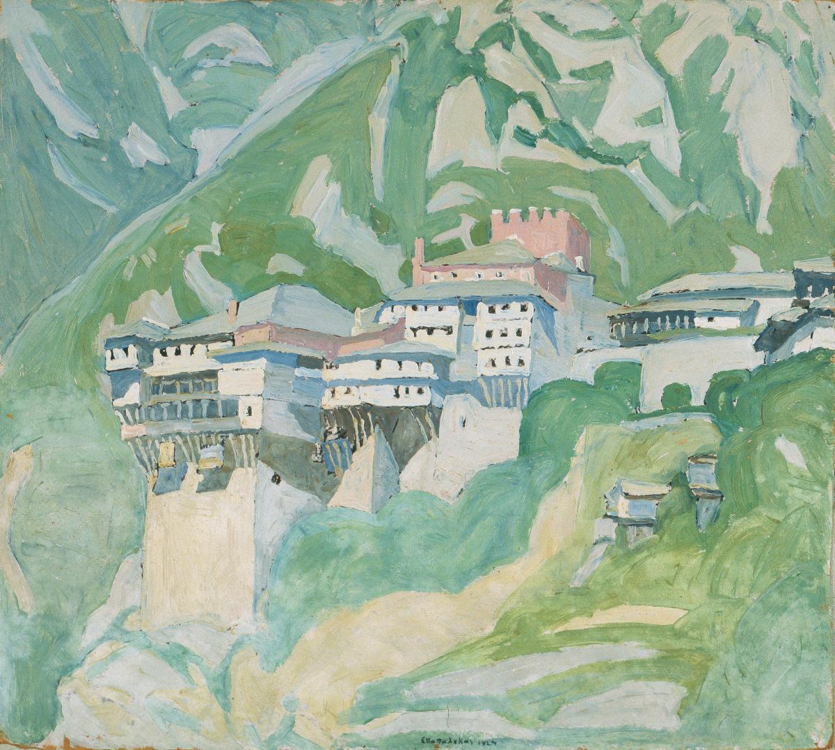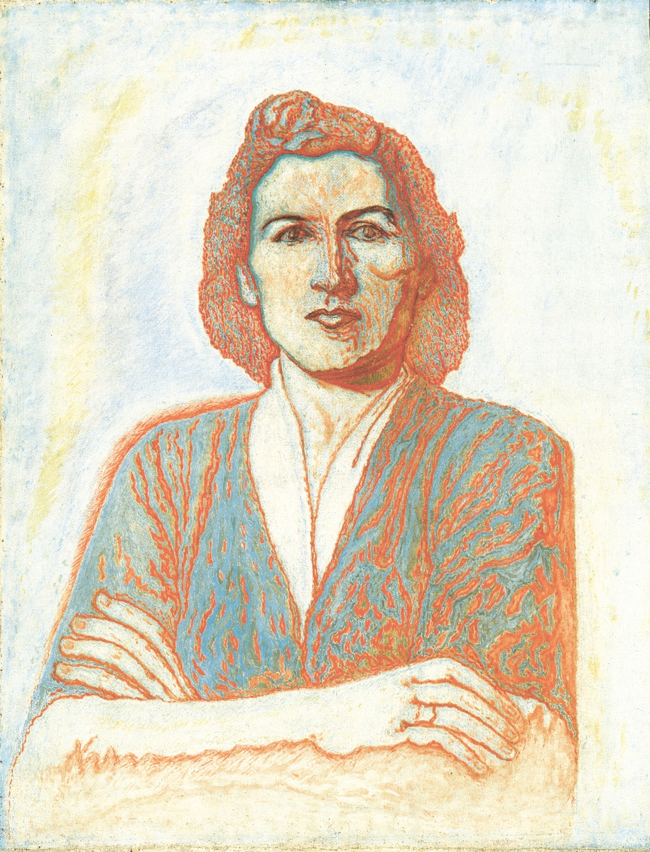 Πορτραίτο ΄Ολγας Παπαλουκά με φόντο τις Καρυές
